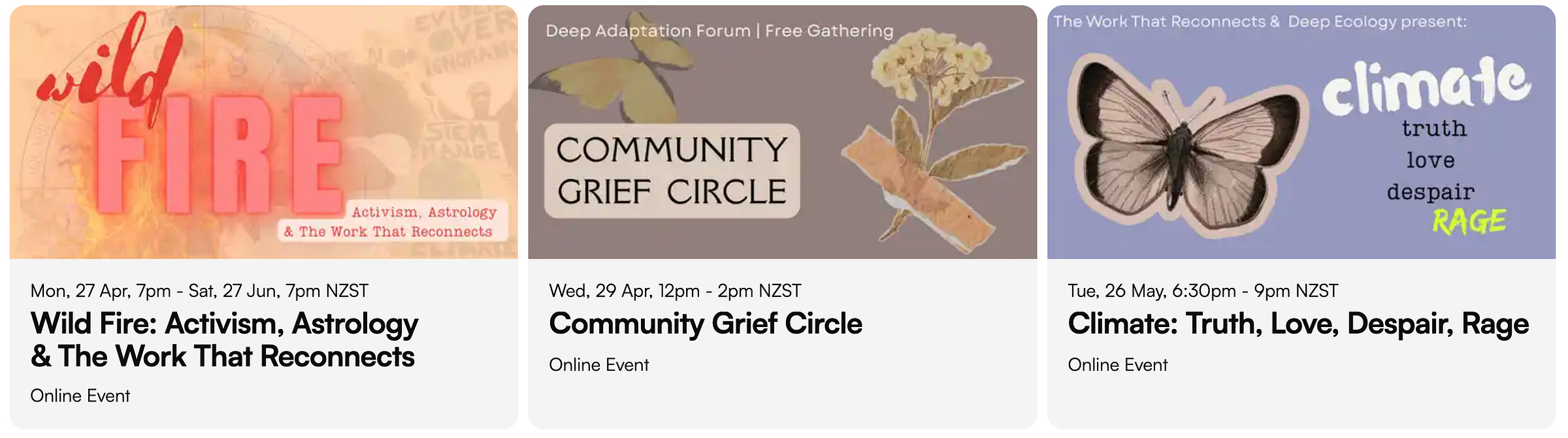 These events are taking shape. Registering interest for any of the below does not commit you in any way. Itâs to help us get a sense of whatâs emerging, whatâs needed and where energy is building.